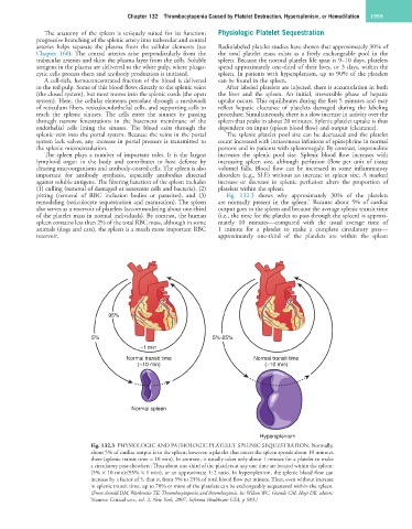 Fig. 132.3 PHYSIOLOGIC AND PATHOLOGIC PLATELET SPLENIC SEQUESTRATION. Normally,