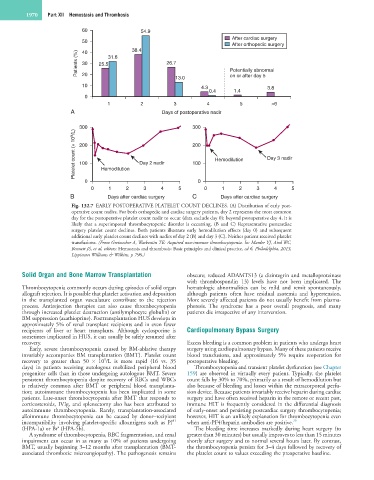 Fig. 132.7 EARLY POSTOPERATIVE PLATELET COUNT DECLINES. (A) Distribution of early post-