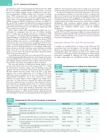 severity of the bleed or the extent of the surgery. Table 135.7 shows TABLE Recommendations for Clotting Factor Replacement