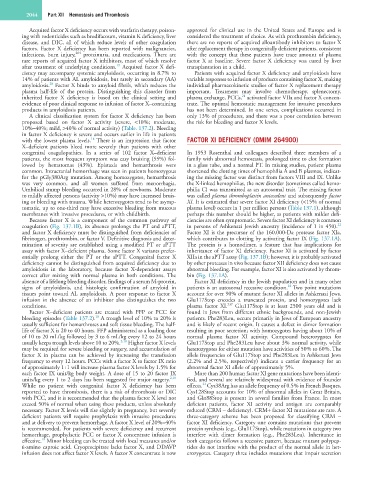 assay with factor X–deficient plasma. Some factor X variants prefer- inheritance of factor XI deficiency. Factor XI is activated by factor