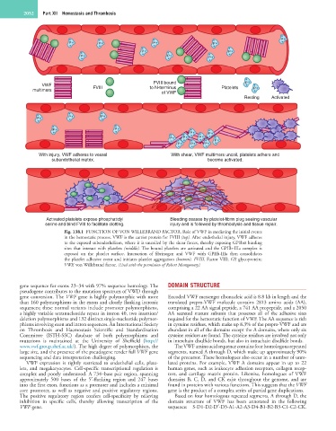 Fig. 138.1 FUNCTION OF VON WILLEBRAND FACTOR. Role of VWF in mediating the initial events