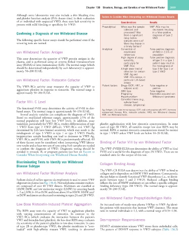 This assay determines the quantity of VWF protein antigen in the High degree of assay False-positive diagnosis