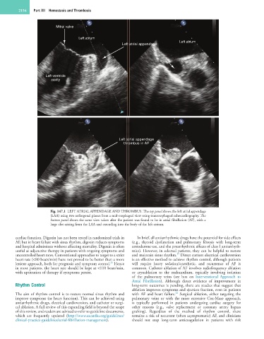 Fig. 147.1 LEFT ATRIAL APPENDAGE AND THROMBUS. The top panel shows the left atrial appendage