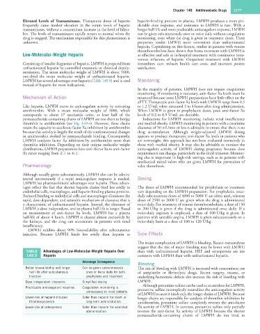 LMWH has several advantages over heparin (Table 149.5) and is used Monitoring
