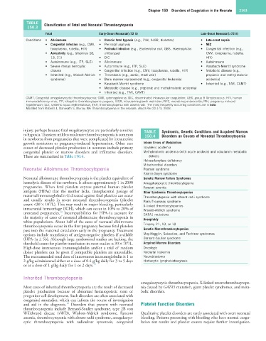 TABLE Classification of Fetal and Neonatal Thrombocytopenia