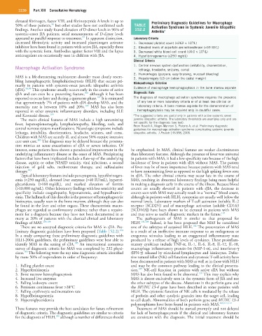 50% of these patients, but other studies have not confirmed such TABLE Activation Syndrome in Systemic Juvenile Idiopathic