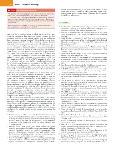 • Patients should be advised to avoid dietary antioxidant supple- 16. Weiger W, Smith M, Boon H, et al: Advising patients who seek comple-