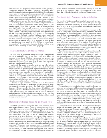 and hypoglycemia and may also have a high rate of bacteremia. 69,77 The anemia of falciparum malaria is typically normocytic and nor-