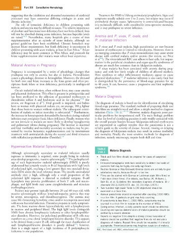 bution of malaria to infant mortality is substantial. Furthermore, infection (Table 158.1). 107–109 However, malaria diagnosis poses par-