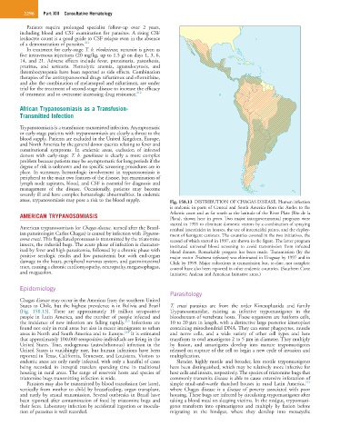 areas, trypanosomiasis may pose a risk to the blood supply. Fig. 158.13 DISTRIBUTION OF CHAGAS DISEASE. Human infection