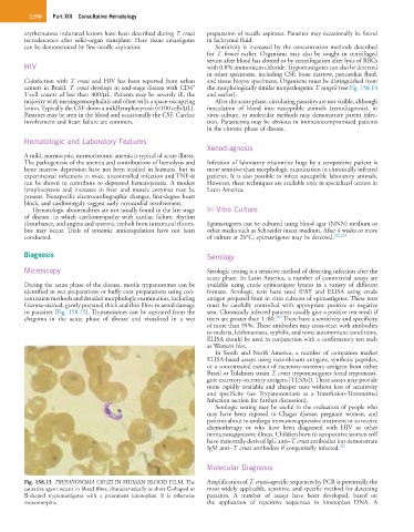 Fig. 158.15 TRYPANOSOMA CRUZI IN HUMAN BLOOD FILM. The Amplification of T. cruzi–specific sequences by PCR is potentially the