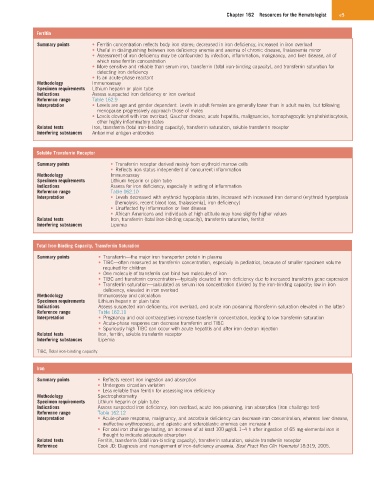 • TIBC—often measured as transferrin concentration, especially in pediatrics, because of smaller specimen volume