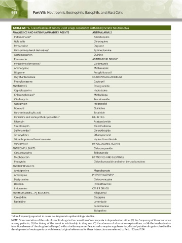 TABLE 65–1. Classification of Widely Used Drugs Associated with Idiosyncratic Neutropenia