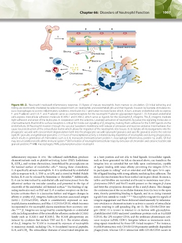 rolling are dominantly mediated by selectins present both on neutrophils and endothelial cells and their ligands. Invasion by bacteria stimulates tis-