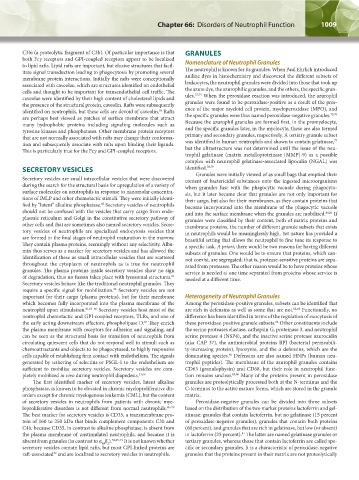 tein of 160 to 250 kDa that binds complement components C3b and of peroxidase-negative granules), granules that contain both proteins