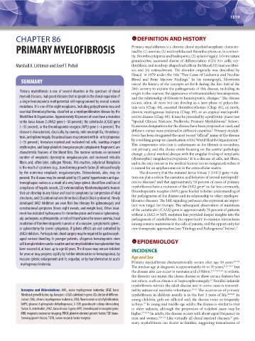 mutations. It is one of the eight neoplasms, including polycythemia vera and mia vera (Chap. 84), essential thrombocythemia (Chap. 85), or, rarely,