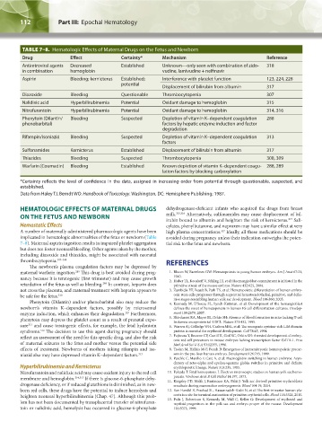 implicated in hematologic abnormalities of the fetus or newborn (Table avoided during pregnancy unless their indication outweighs the poten-