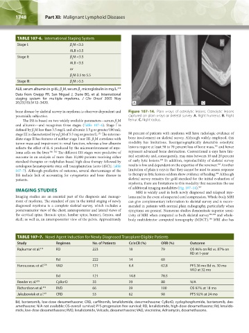 diate stage II has features of neither stage I nor III. β M correlates with bone involvement on skeletal survey. Although widely employed, this