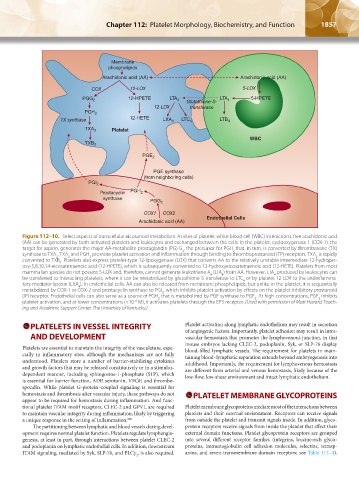 Figure 112–10. Select aspects of transcellular eicosanoid metabolism. At sites of platelet-white blood cell (WBC) interactions, free arachidonic acid