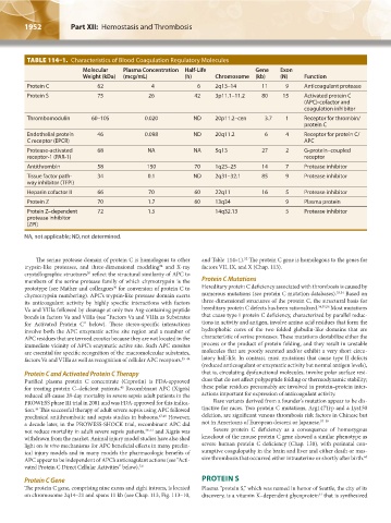 TABLE 114–1. Characteristics of Blood Coagulation Regulatory Molecules