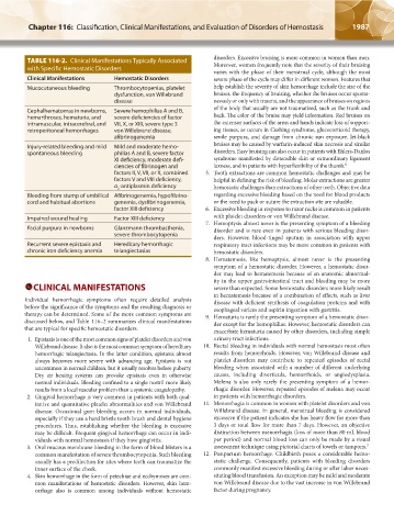 discussed below, and Table 116–2 summarizes clinical manifestations der except for the hemophilias. However, hemostatic disorders can
