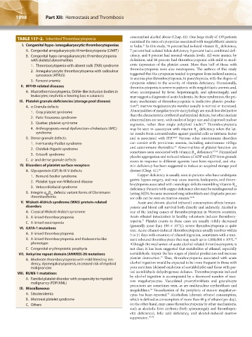 TABLE 117–2. Inherited Thrombocytopenia concomitant alcohol abuse (Chap. 41). One large study of 139 patients