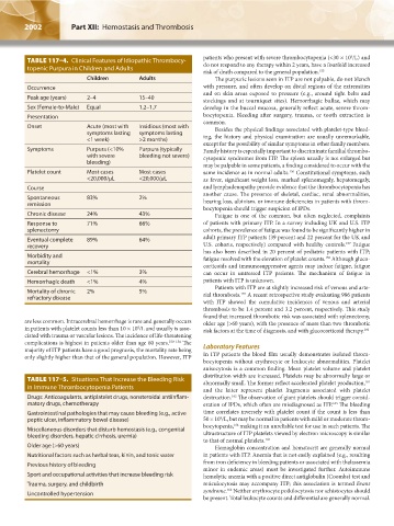 TABLE 117–4. Clinical Features of Idiopathic Thrombocy- patients who present with severe thrombocytopenia (<30 × 10 /L) and