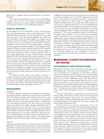 private HPA antigens may be responsible for NAIT. 317,322,357 Platelet production is usually normal in patients with splenomegaly, as