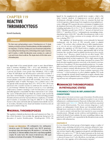 or secondary, thrombocytosis; clonal and familial thrombocytosis are vated platelet count. Table 119–1 lists the clinical conditions associated