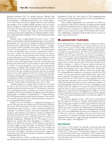 bleeding occurs in approximately 10 percent of patients. An appar- of having VWD, the following tests are routinely performed: assay of