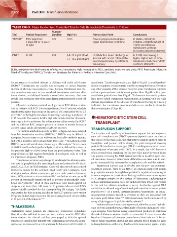 TABLE 138–5. Major Randomized Controlled Trials for Safe Hemoglobin Thresholds in Children