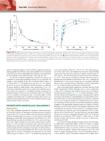survival at platelet counts of less than 100 × 10 /L (Fig. 139–1B). 10 /L and 85 × 10 /L and increased to 25 percent when counts fell below