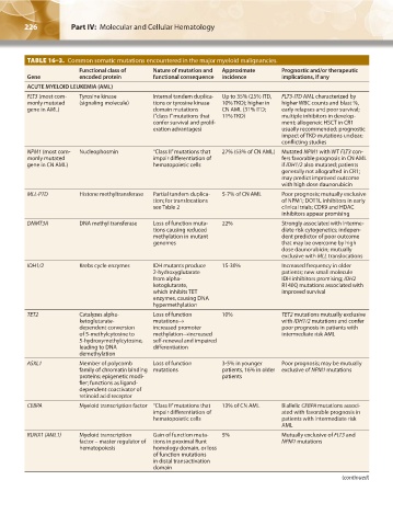 TABLE 16–3. Common somatic mutations encountered in the major myeloid malignancies.