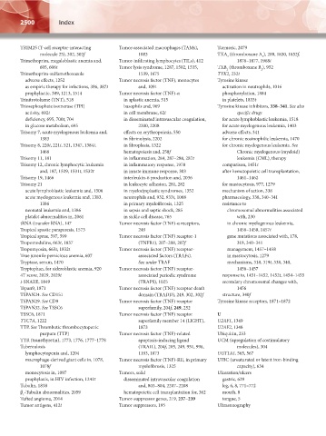 Tryptophan, for sideroblastic anemia, 920 Tumor necrosis factor (TNF) receptor- 1456–1457