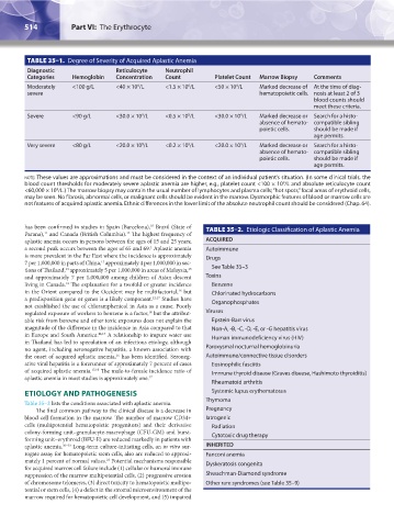 TABLE 35–1. Degree of Severity of Acquired Aplastic Anemia