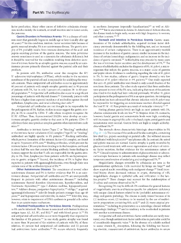 40 years). In this condition, intrinsic factor secretion fails because of festations of PA include achlorhydria, acquired intrinsic factor defi-