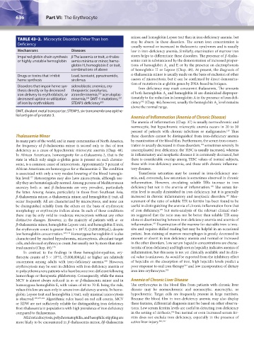 TABLE 43–2. Microcytic Disorders Other Than Iron minor, and hemoglobin Lepore trait than in iron-deficiency anemia, but
