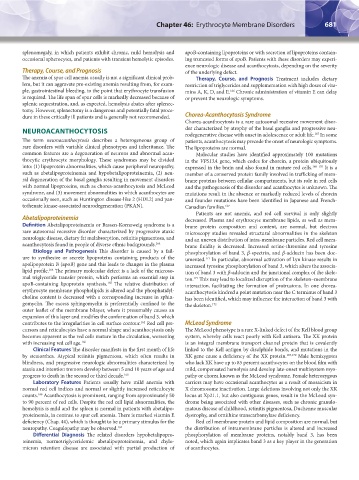 into: (1) lipoprotein abnormalities, which cause peripheral neuropathy, expressed in the brain and also found in mature red cells. 168–170 It is a