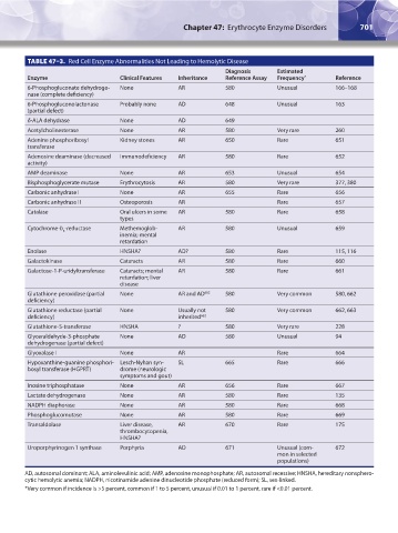 TABLE 47–3. Red Cell Enzyme Abnormalities Not Leading to Hemolytic Disease