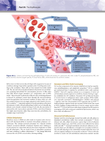 Figure 49–5. Schema summarizing the pathophysiology of sickle cell anemia. K+, potassium; NO, nitric oxide; PS, phosphatidylserine; RBC, red