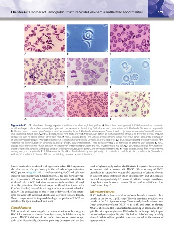 Figure 49–11. Blood cell morphology in patients with structural hemoglobinopathies. A. Blood film. Hemoglobin (Hb) SS disease with characteris-