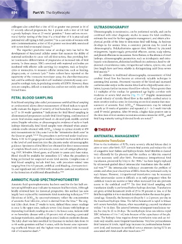 maternal antibodies to cause red cell destruction, thus providing bet- hydrops, ultrasonographic parameters, such as intrahepatic and extra-