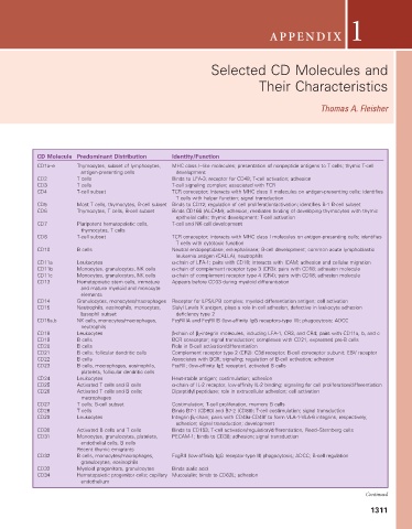 CD5 Most T cells, thymocytes, B-cell subset Binds to CD72; regulation of cell proliferation/activation; identifies B-1 B-cell subset