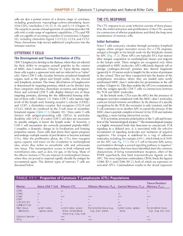 TABLE 17.1 Properties of Cytotoxic T Lymphocyte (CTL) Populations