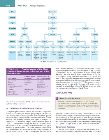 TABLE 43.1 Popular Names of the Most from S. invicta contains a 37-kDa allergen and a 24-kDa allergen,