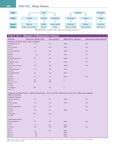 TABLE 43.2 allergens of Hymenoptera Venoms