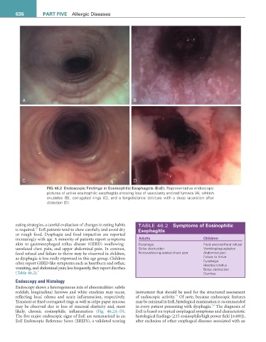 likely, chronic eosinophilic inflammation (Fig. 46.2A–D). EoE is based on typical esophageal symptoms and characteristic