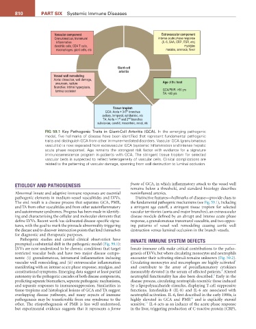 FIG 59.1 Key Pathogenic Traits in Giant-Cell Arteritis (GCA). In the emerging pathogenic