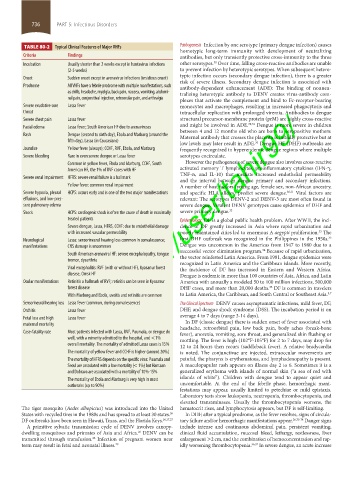 TABLE 80-2 Typical Clinical Features of Major VHFs Pathogenesis Infection by one serotype (primary dengue infection) causes