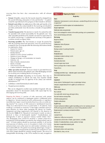 CHAPTER 11: Transportation of the Critically Ill Patient 71
